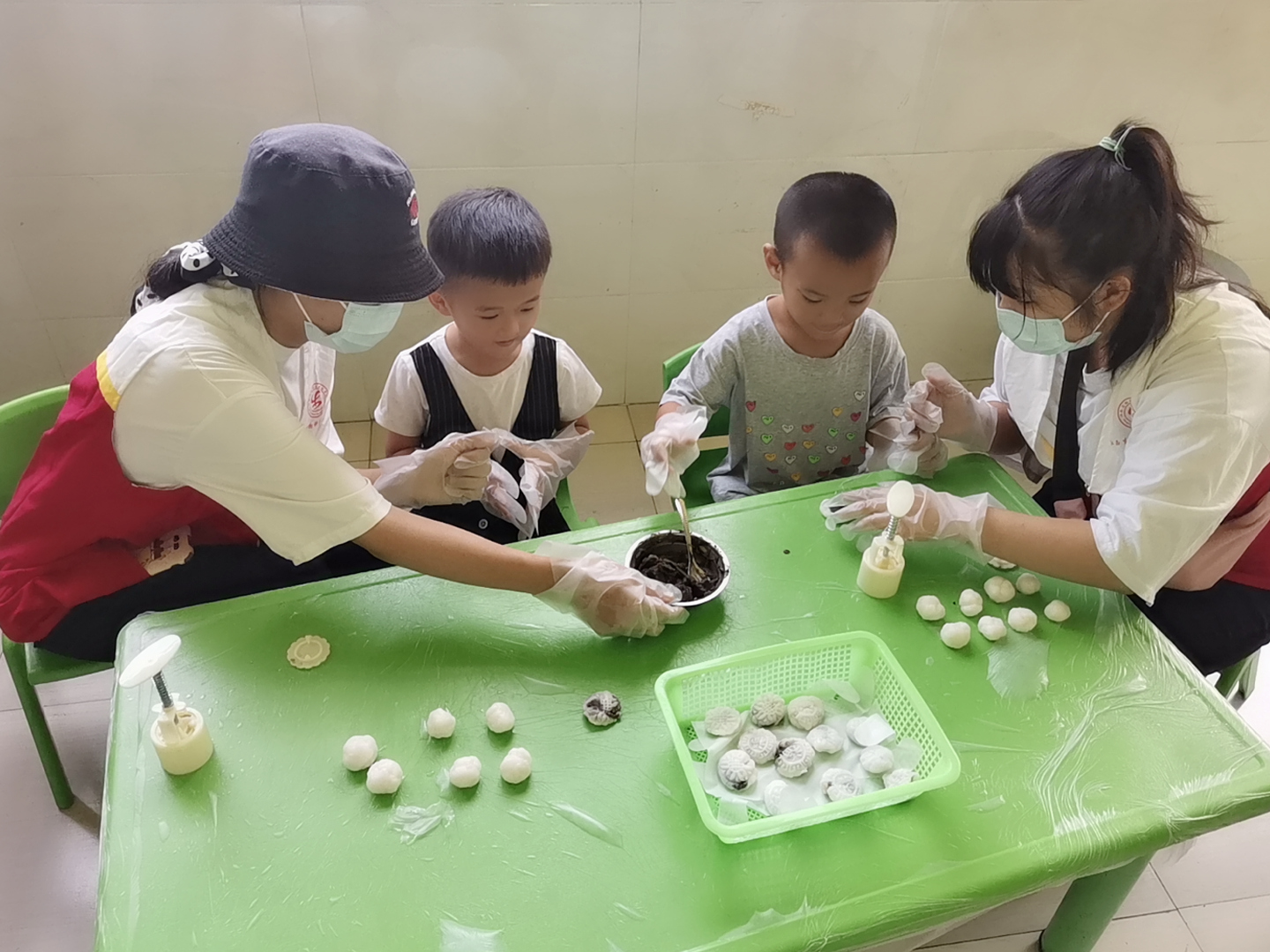 此次活动主要以锻炼小朋友们的自主动手实践能力为目的,教他们做月饼,了解中秋节的来源以及拼积木游戏。内容丰富,形式多样;给小朋友们不一样的体验。