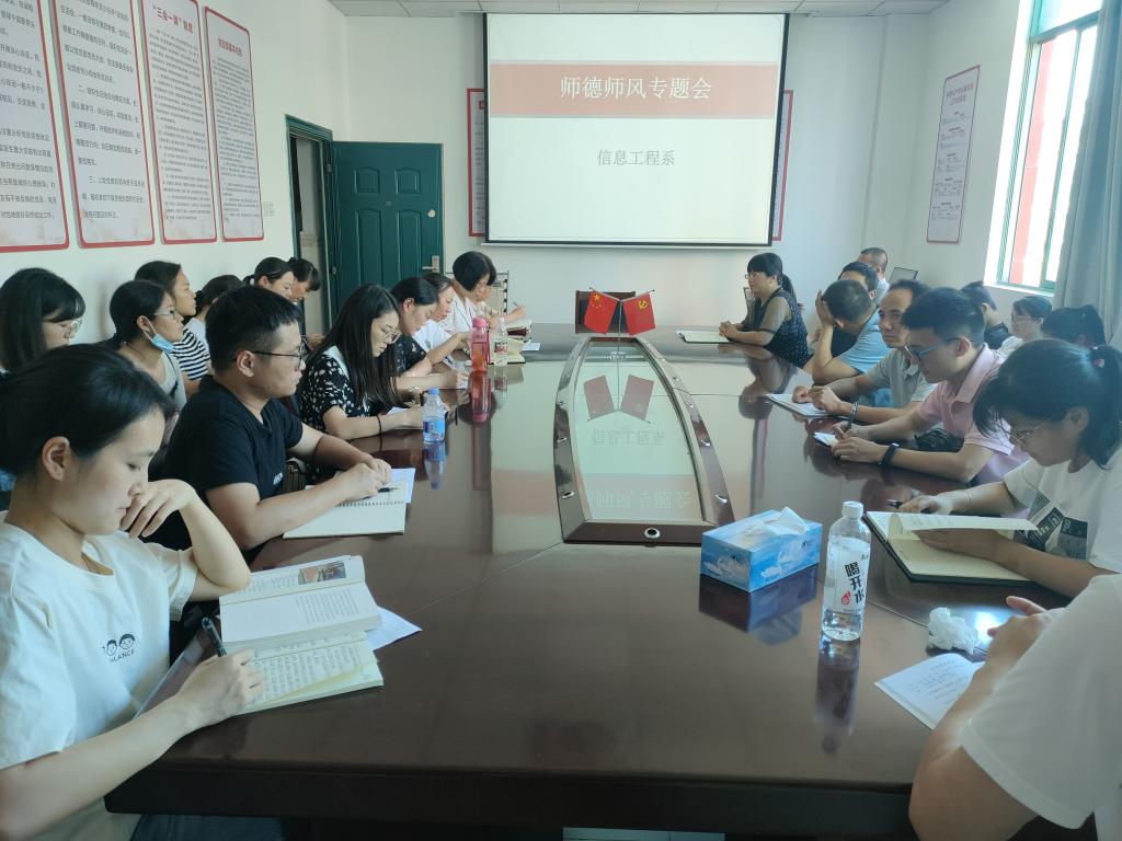 9月22日下午,信息工程系全体教职工,在党员活动室召开师德师风专题教育实施会议。