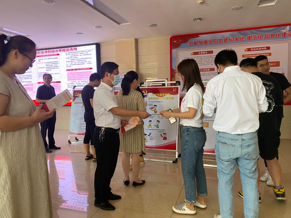 在宣传活动中,学院纪检监察工作人员通过悬挂宣传横幅、在办公区域专设宣传展板、运用电子大屏幕播放宣传视频、发放《举报须知》宣传折页和现场接受咨询等多种方式,让广大干部职工知晓纪检监察机关受理信访举报的范围、省纪委省监委信访举报的渠道、举报人享有的权利和义务、信访过程中的违法行为等等。