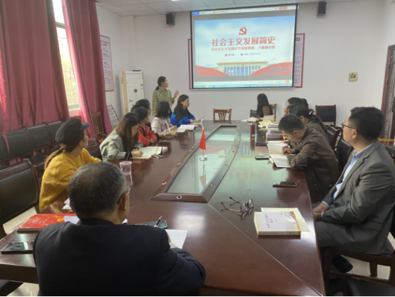 10月27日,经贸系党支部按照上级党委和院党委党史学习教育工作统一部署,支部党员夏丹颖老师以《从社会主义发展史中汲取智慧、力量和信心》为题讲述了一堂党课教育。支部全体党员参加。