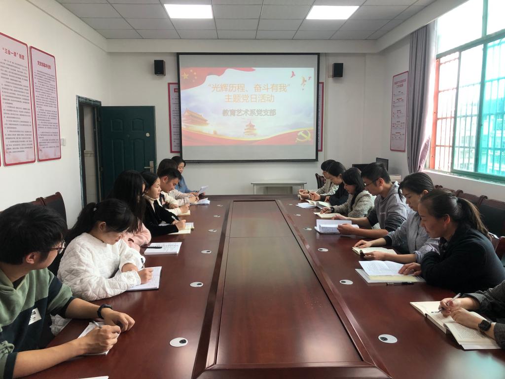 10月29日,教育艺术系党支部组织开展“光辉历程、奋斗有我”主题党日活动,活动由支部副书记主持。