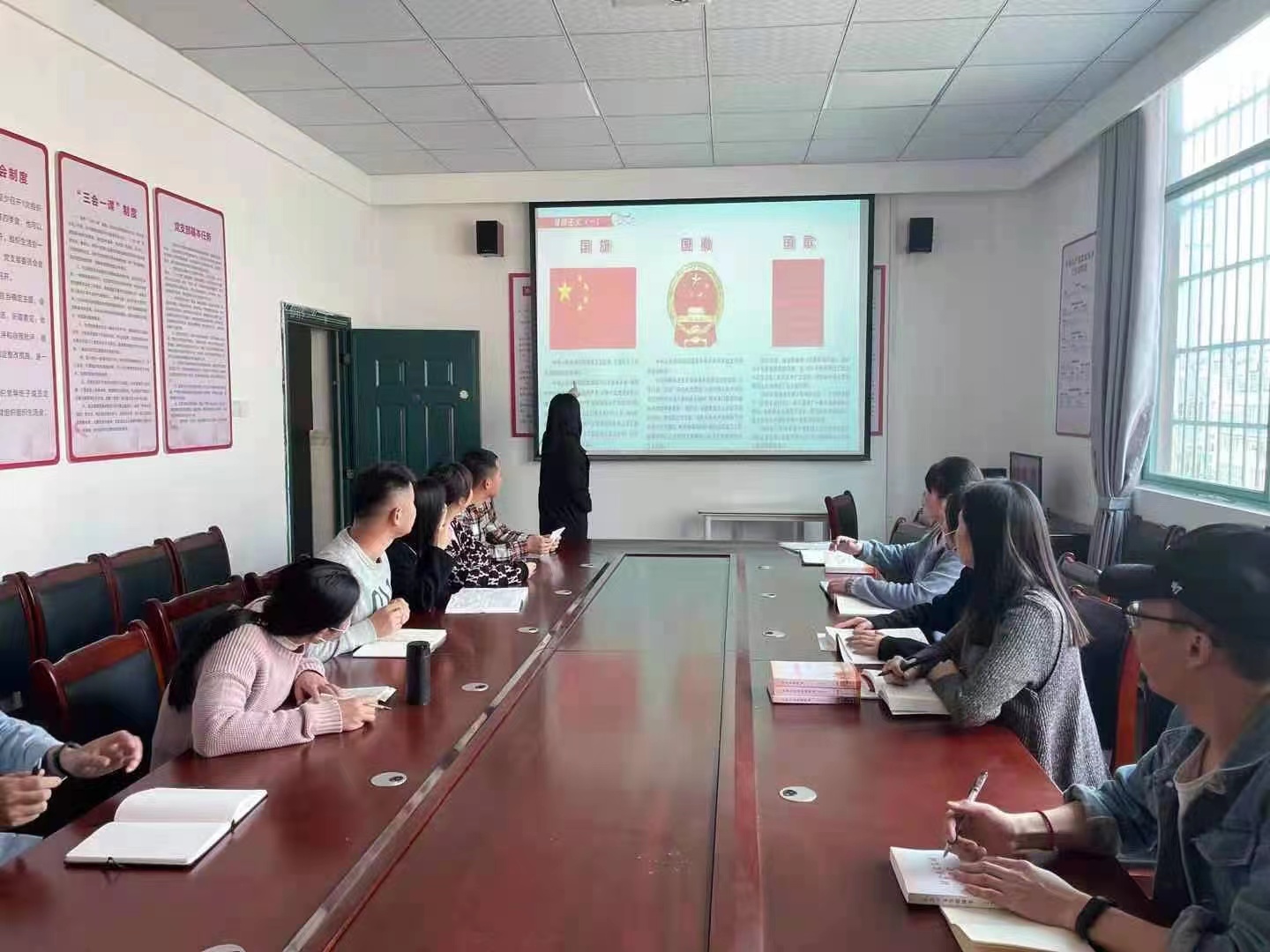 新入职教师党员还围绕爱国主题为大家上了微党课,加深了教育艺术系全体党员、干部对国旗、国徽、国歌的认识。少年兴则国兴,少年强则国强,我们要增强爱国的情感和振兴祖国的责任感,真正把爱国之志变成报国之行。