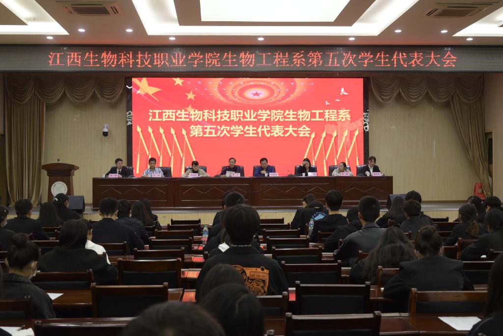 11月5日,万象城官网生物工程系第五次学生代表大会在行政楼二楼多功能厅隆重召开。学院党委委员、副院长李达、学工处副处长、院团委副书记、生物工程系主任、党支部书记、党支部副书记、副主任和部分辅导员出席本次大会。该系学生会全体成员和128名学生代表参加了本次会议