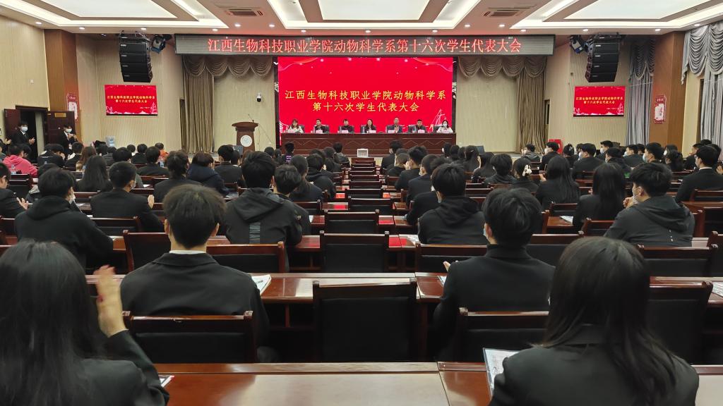 11月7日下午,动物科学系第十六次学生代表大会在行政楼二楼多功能厅隆重召开。团委书记、学工处副处长、动物科学系主任、党支部书记、副书记及全体辅导员出席本次大会。参加本次大会的有学生会全体成员和150名学生代表。