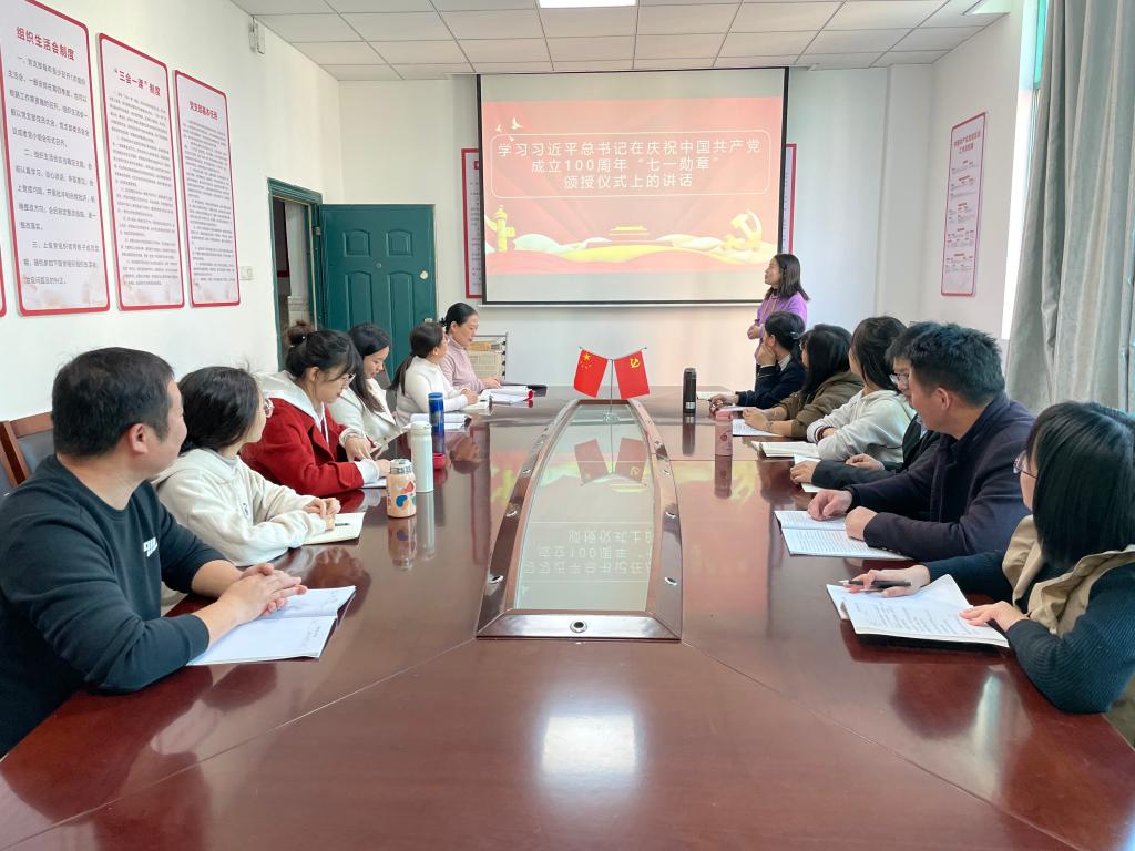 新入职的党员同志围绕习近平总书记在庆祝中国共产党成立100周年“七一勋章”颁授仪式上的重要讲话,向大家讲授了我们党百年来走过的光辉历程和取得的丰功伟绩。她指出,“七一勋章”获得者等功勋党员的优秀事迹,激励引导大家牢记初心使命,践行根本宗旨,弘扬伟大建党精神,发扬优良传统,我们每个人都应该在各自岗位上顽强拼搏、建功立业。