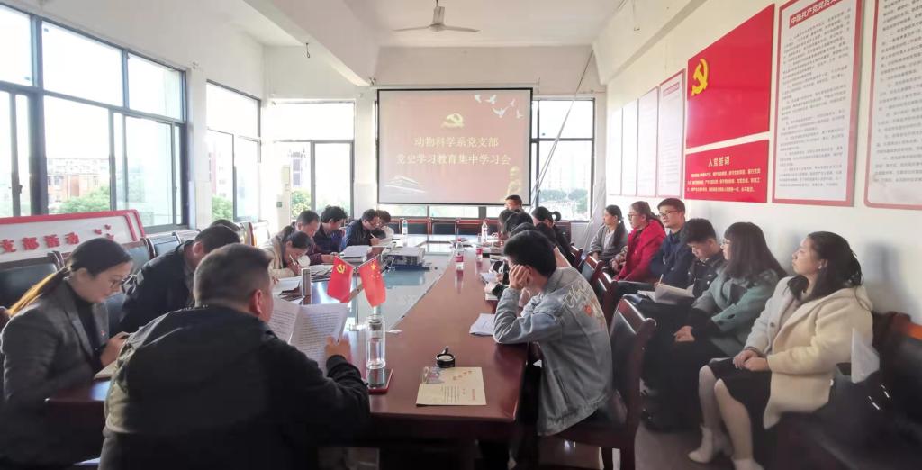11月10日下午,动物科学系党支部开展党史学习教育集中学习。会议由党支部书记主持,支部党员干部参加了学习。